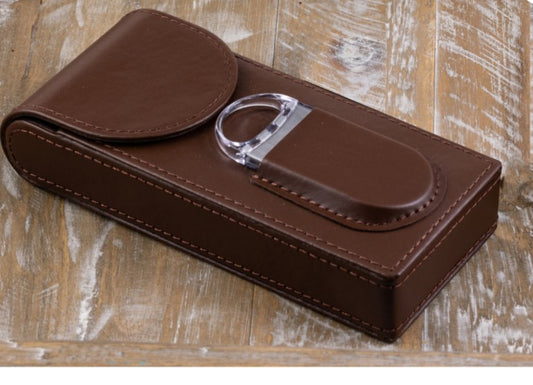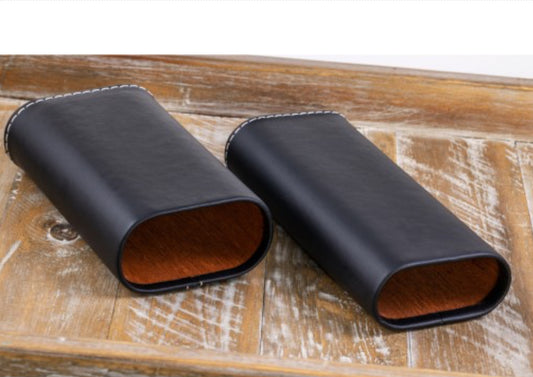3 Cigar Black Leather Case