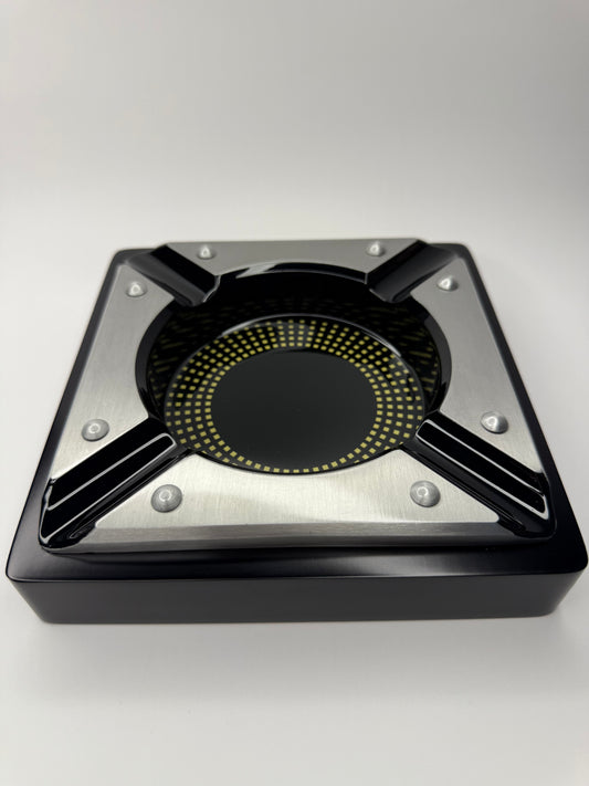4 Cigar Black Metal Ashtray with Contemporary Metal Accents
