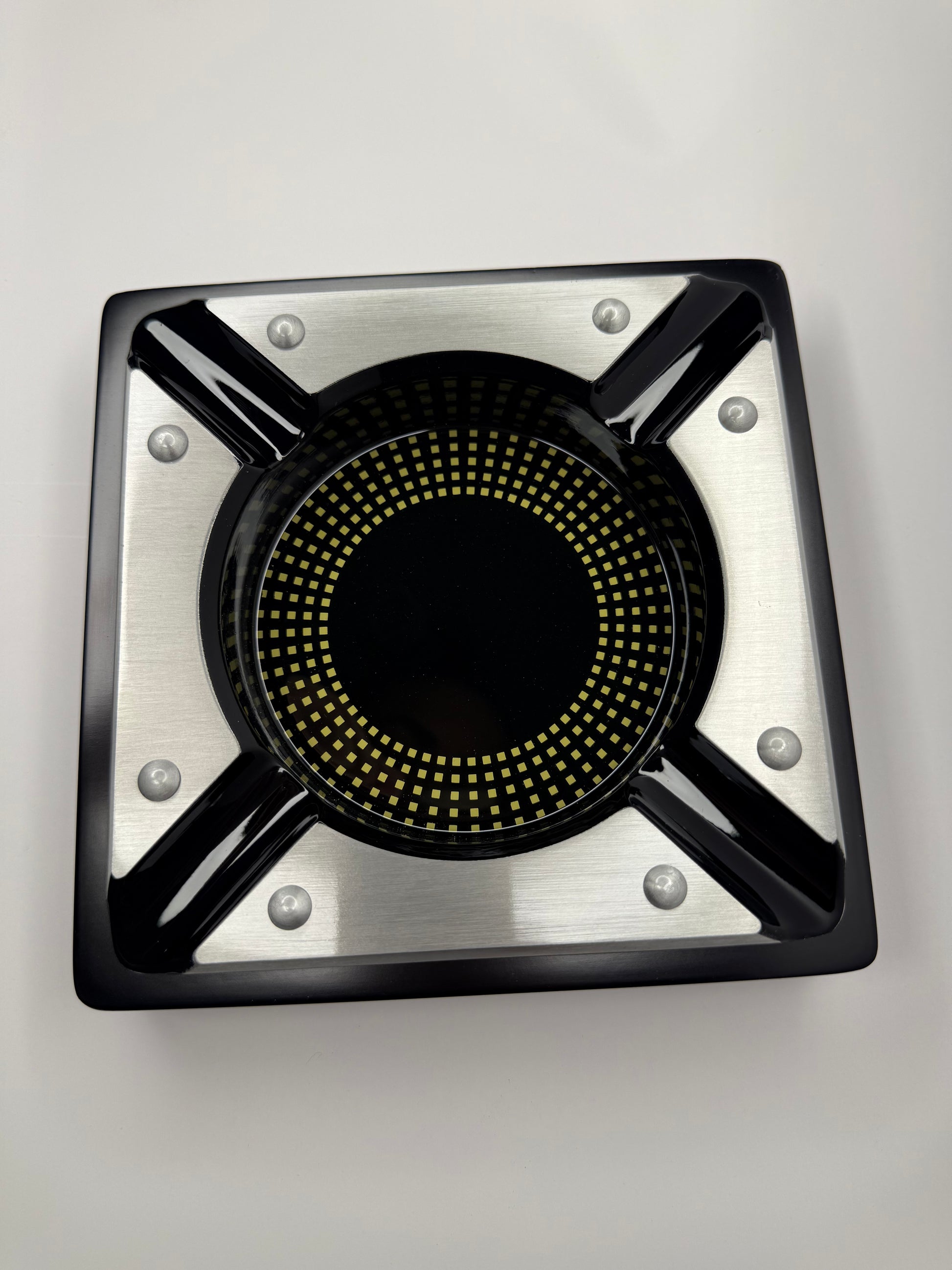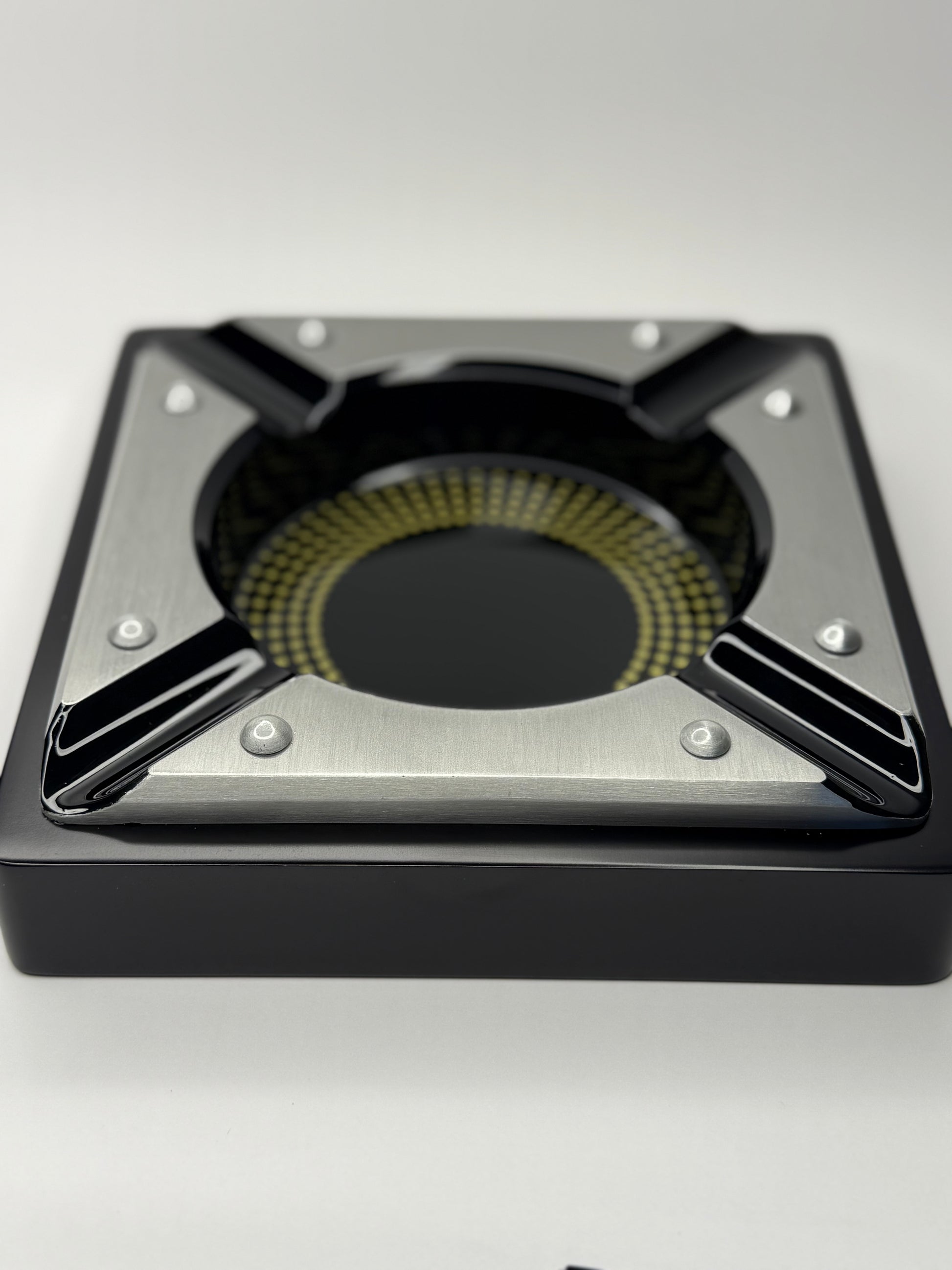 4 Cigar Black Metal Ashtray with Contemporary Metal Accents