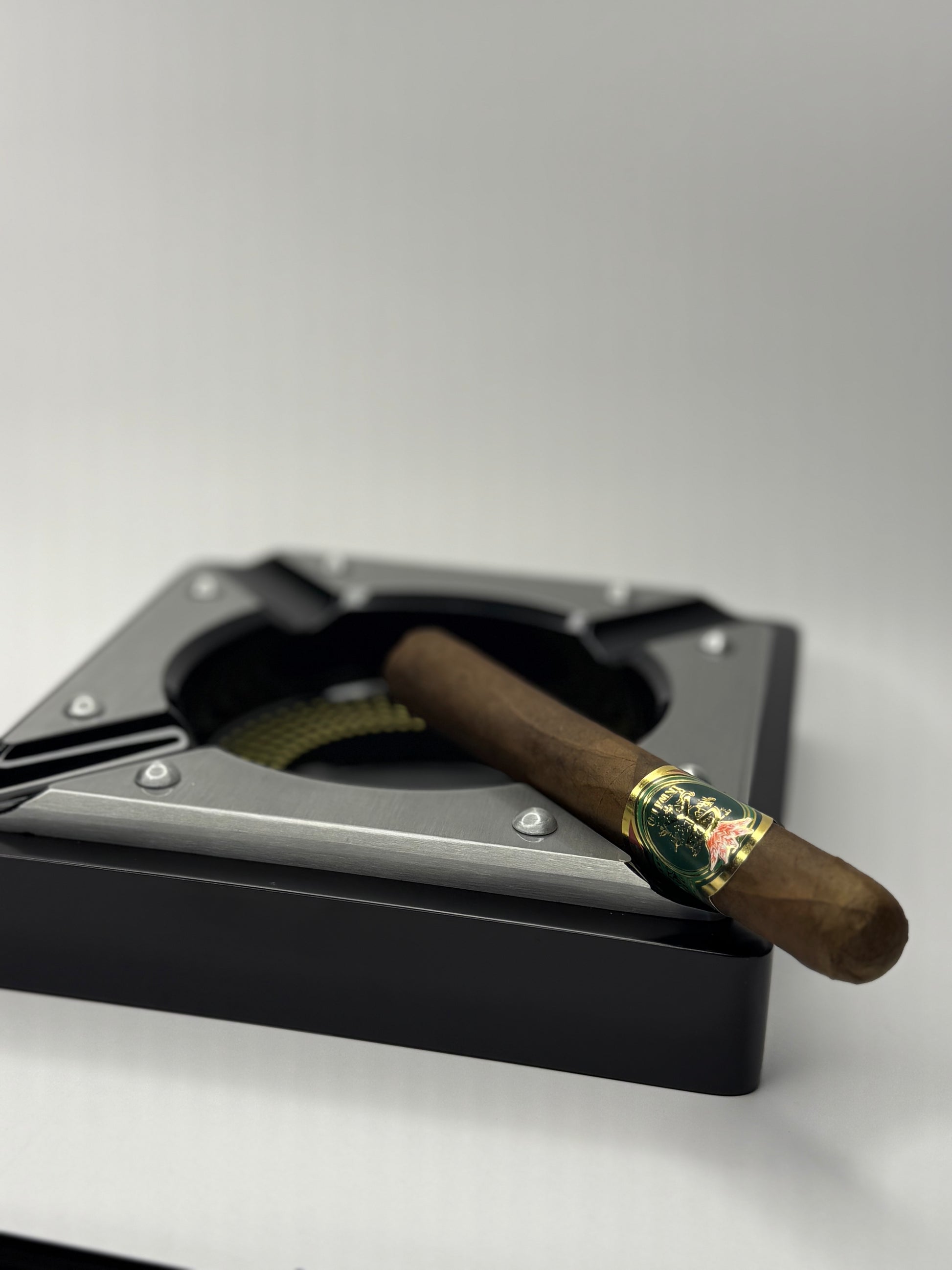 4 Cigar Black Lacquer Metal Ashtray with Metal Accents